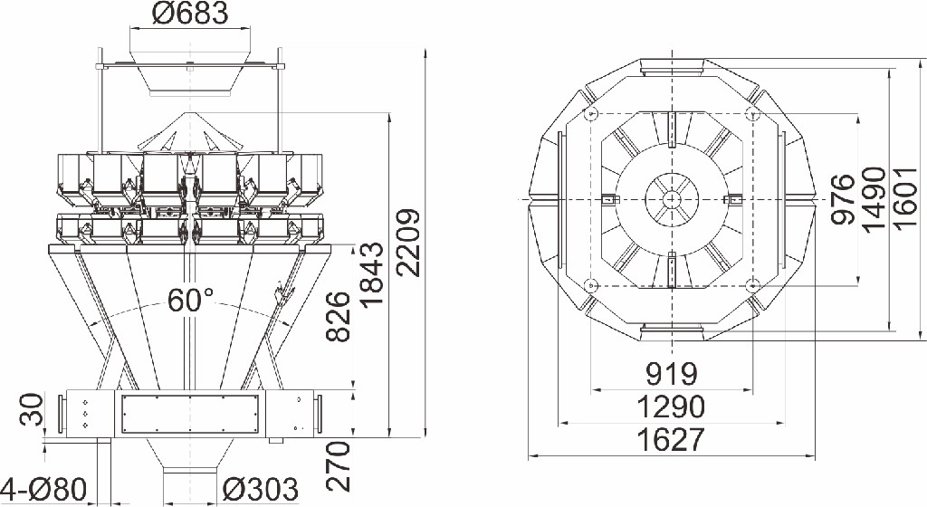 1. مخروط علوي دوار قابل للتعديل بسرعة مناسب لتغذية المنتجات المختلفة.
