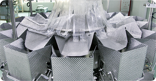 آلة تعبئة وتوزين السلطة متعددة الرؤوس مع 10 موازين رأسية لوزن الفواكه والخضروات