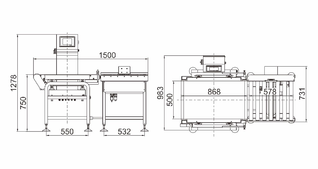 أعلى وزن فحص يمكن أن يصل إلى 30 كجم ، شروط عمل مستقرة ، سرعة ودقة عالية ، يتم رفض المنتجات غير المؤهلة تلقائيًا.