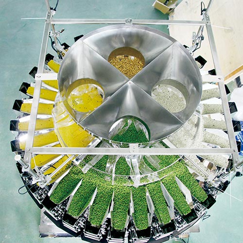 Mini 32 heads mixing weigher is suitable for weighing small granules such as seeds, tea, coffee beans etc.