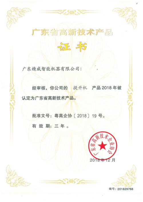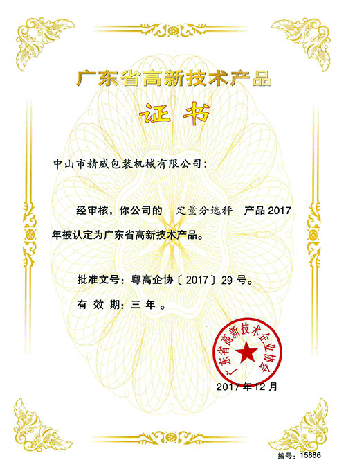 高新技术产品证书