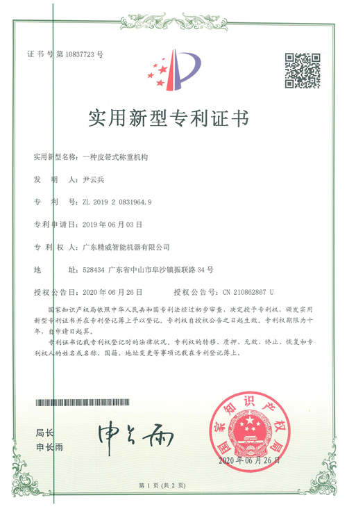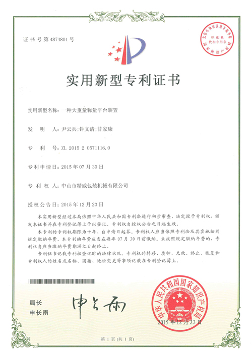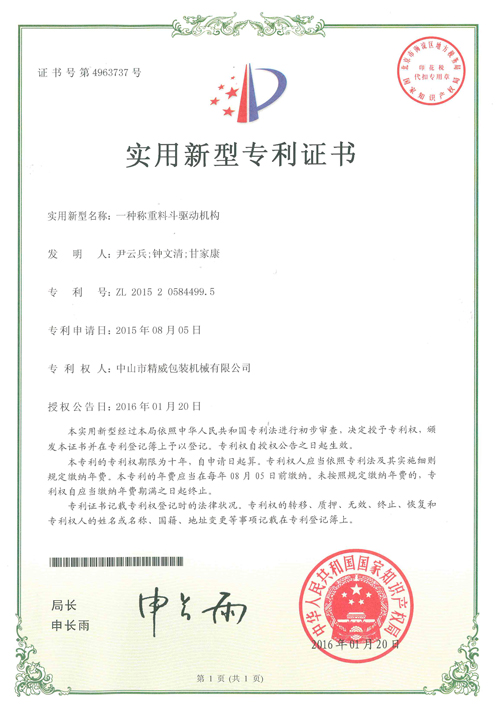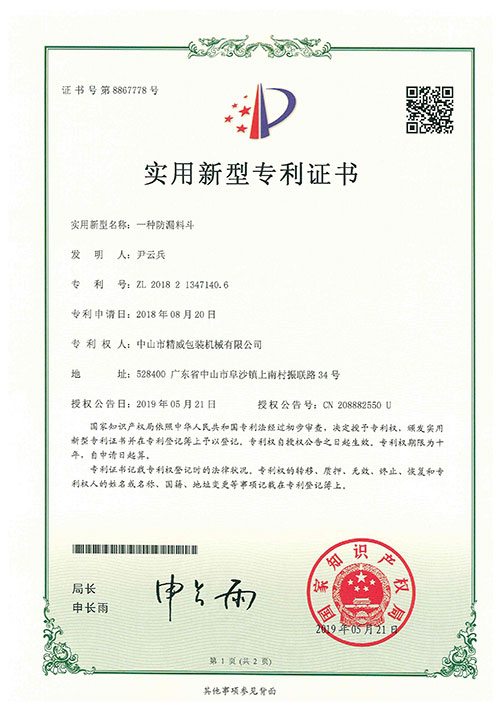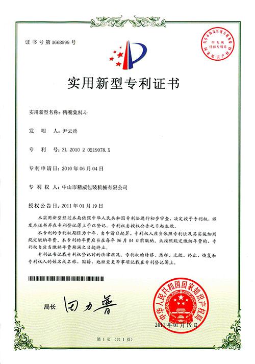 新型专利证书